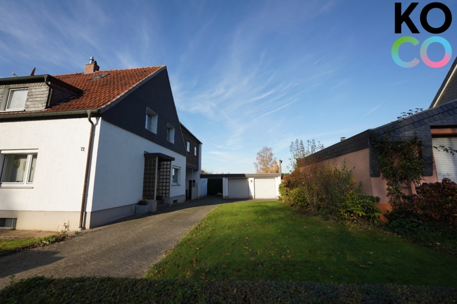 Derzeit besteht noch keine direkte Anbindung an das öffentliche Straßennetz. Diese muss nach dem Erwerb durch den Käufer hergestellt werden. Im Zuge des Verkaufs werden zwei bestehende Garagen abgerissen, sodass ein zukünftiger Zugang zur Straße rechtlich gesichert ist. Zusätzlich kommen ca. 125 m² zur Grundstücksfläche hinzu, die ausschließlich als Zufahrts- bzw. Wegfläche von der Straße zum Grundstück dienen.