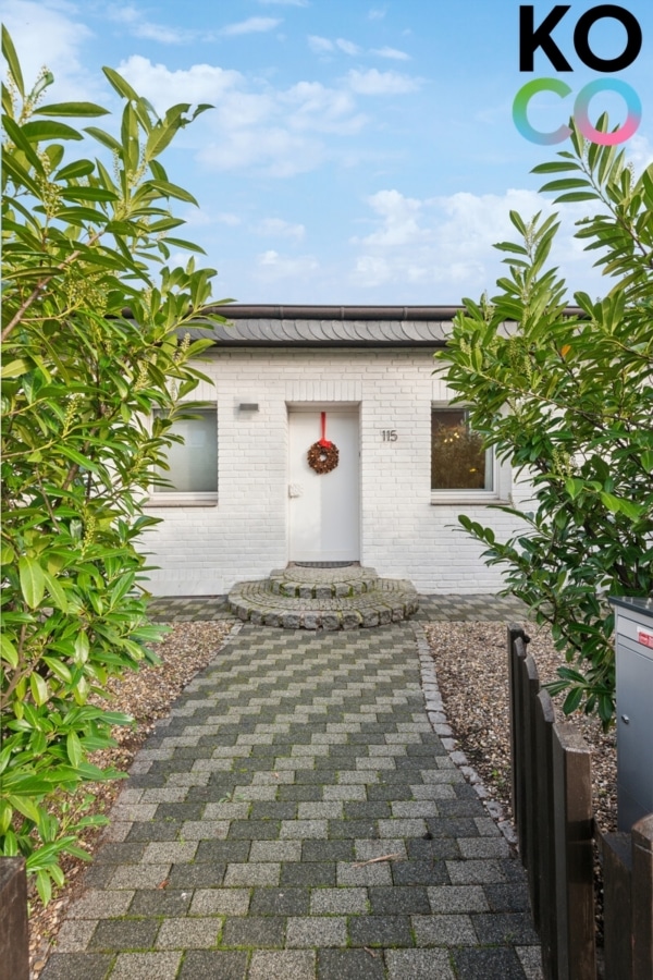 Beim Betreten des Bungalows werden Sie von einem praktischen Eingangsbereich begrüßt, der mit einem Gäste-WC und einem Abstellraum ausgestattet ist. Der Flur führt Sie weiter in den großzügigen Wohn-/Essbereich, der viel Platz für gemütliches Beisammensein bietet. Hier können Sie entspannte Stunden mit Familie und Freunden verbringen.