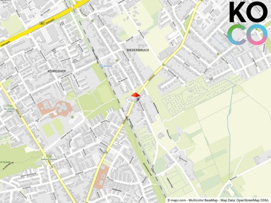 Zusätzlich bietet die gute Anbindung an die Autobahnen A44 und A57 eine schnelle Verbindung zu umliegenden Städten und Regionen, was die Lage für geschäftliche Aktivitäten äußerst attraktiv macht.