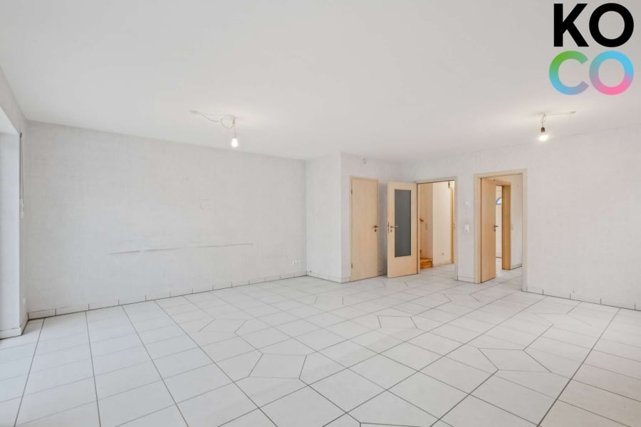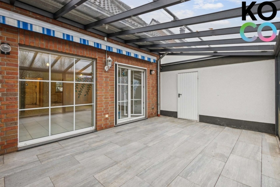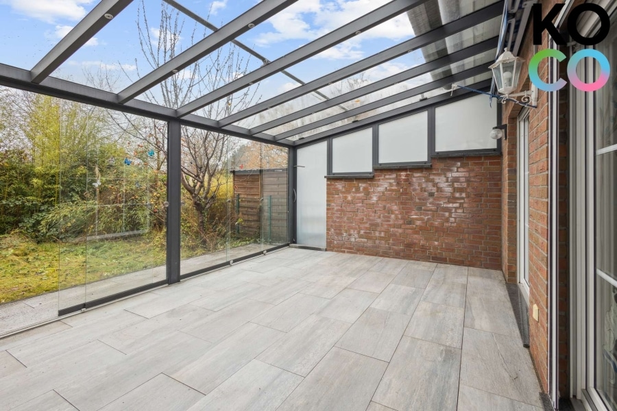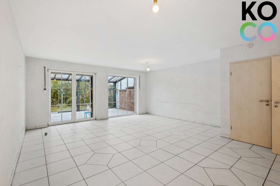 Der großzügige Wohnbereich bildet das Zentrum des Hauses und bietet einen direkten Zugang zum ca. 9 m² großen Kaltwintergarten und zum Garten. Ein Abstellraum ergänzt das Raumangebot auf dieser Ebene.
