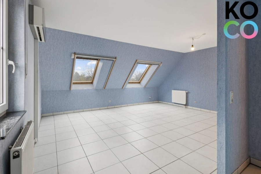 Das Dachgeschoss ist ausgebaut und bietet einen großen, vielseitig nutzbaren Raum.