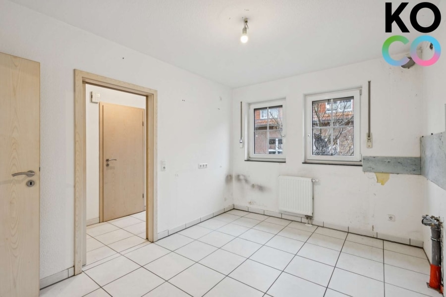 Der Eingangsbereich führt in eine freundliche Diele. Hier befinden sich das Gäste-WC und die Küche.