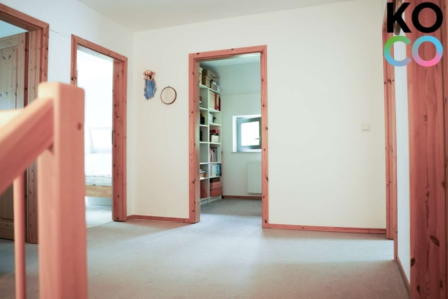 Im Obergeschoss erwarten Sie drei großzügig geschnittene Schlafzimmer, ein kleiner Raum, der derzeit als Bibliothek genutzt wird sowie ein Badezimmer mit Eckbadewanne und Dusche.