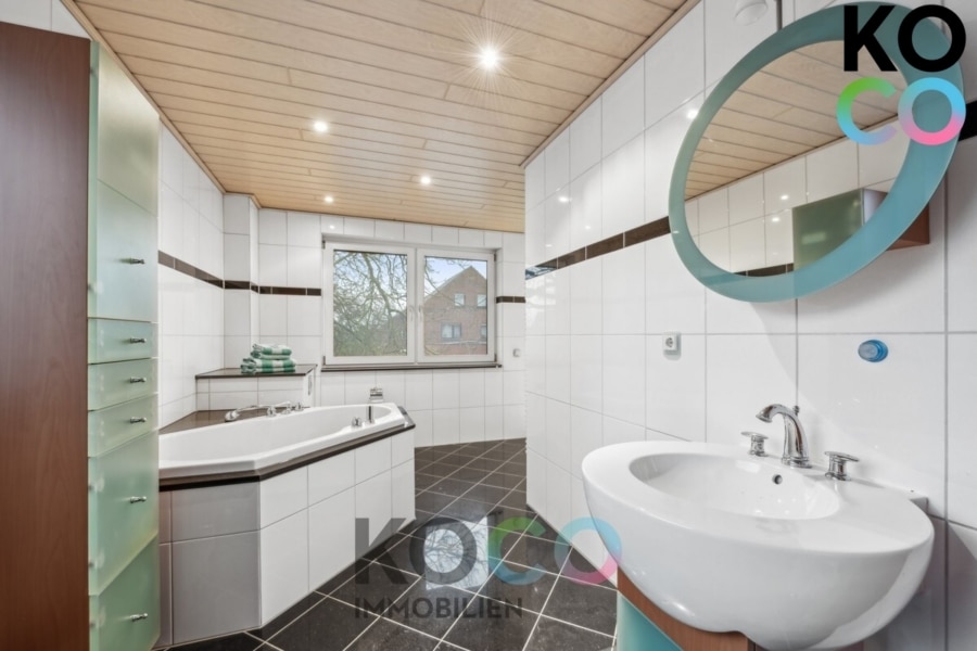 - Geräumiges Masterbad ausgestattet mit Badewanne und Dusche