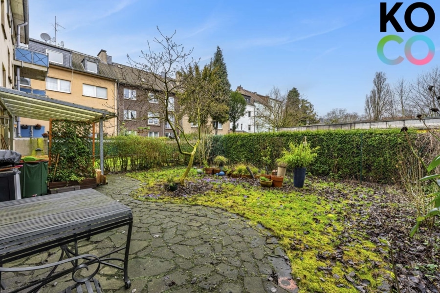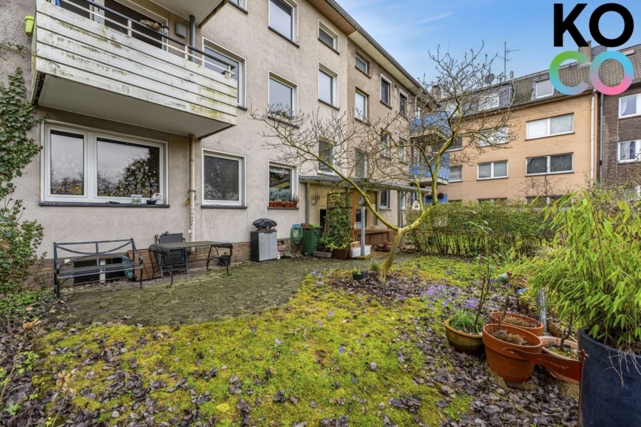 Die rückwärtige Freifläche wird derzeit gemeinschaftlich genutzt. Grundsätzlich besteht die Möglichkeit, diese Fläche der Erdgeschosswohnung zuzuordnen, einen direkten Zugang herzustellen und damit zusätzliches Entwicklungspotenzial zu nutzen.