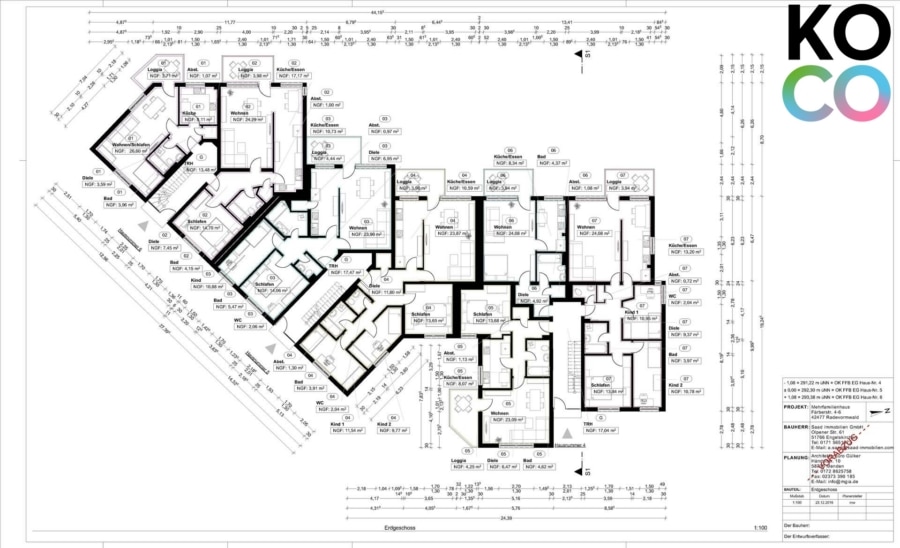 bereits aufgeteilten Eigentumswohnungen und etwa 1350 m² Wohnfläche auf Fertigstellung durch