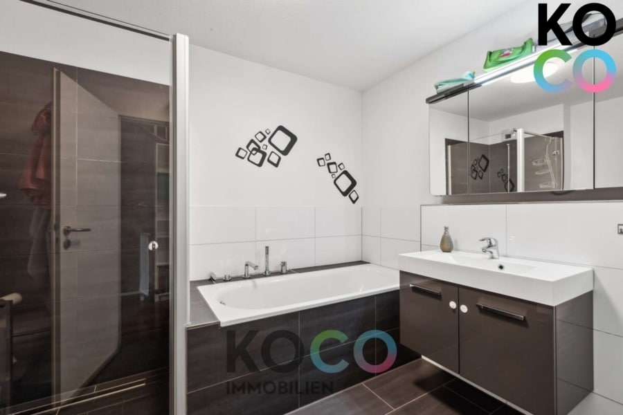Zwei stilvoll gestaltete Bäder verbinden modernes Design, mit Funktionalität und runden den Wohnkomfort perfekt ab. Eine eigene Garage mit elektrischem Tor sowie ein zusätzlicher Stellplatz direkt vor dem Haus bieten dabei höchsten Alltagskomfort. So entsteht ein Zuhause, das durch zeitlose Eleganz, hochwertige Ausstattung und eine familienfreundliche Lage gleichermaßen begeistert