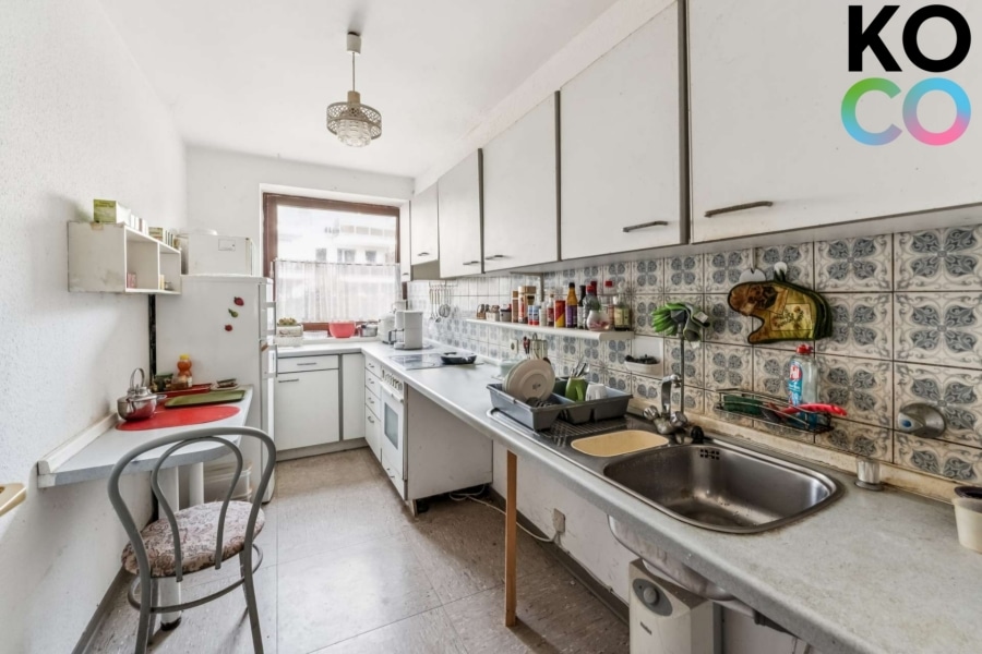 Die Küche ist separat vom Wohnbereich angeordnet und bietet ausreichend Platz für eine moderne Einbauküche mit allen notwendigen Geräten.