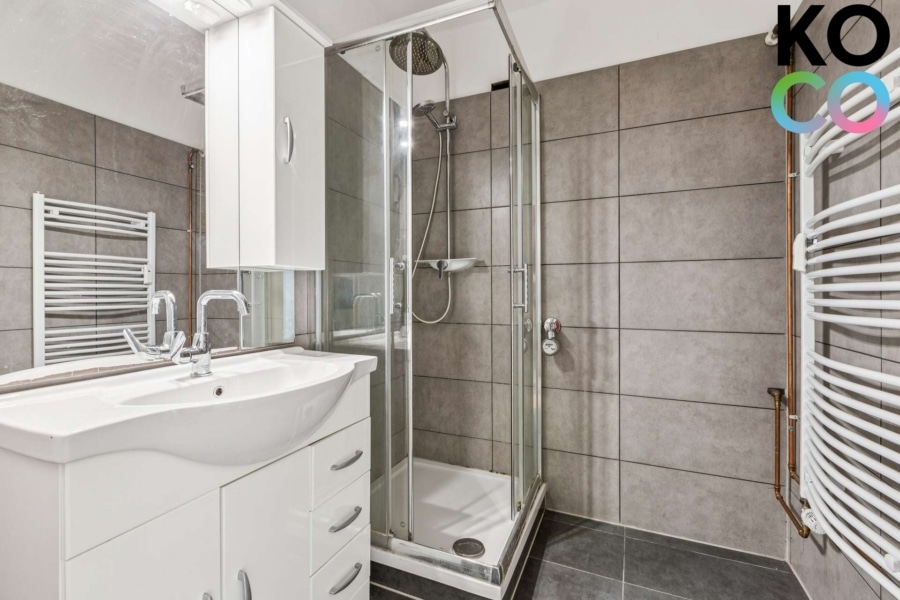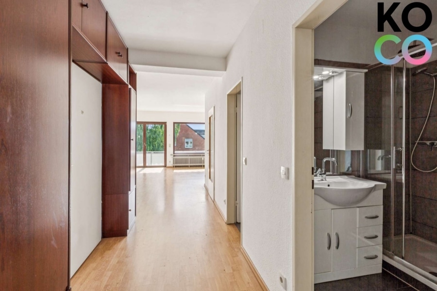 Ein besonderes Merkmal der Wohnung ist die praktische Trennung von WC und Bad: Das Duschbad ist mit Waschbecken und Dusche ausgestattet, das separate WC befindet sich in einem eigenen Raum. Diese Aufteilung bietet im Alltag zusätzlichen Komfort, insbesondere bei gemeinsamer Nutzung.