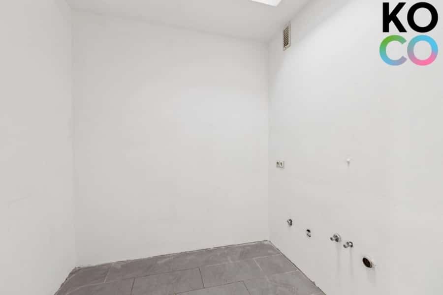 Die Küche ist als separater Raum vom Wohnbereich abgetrennt und bietet Platz für eine Einbauküche mit allen wichtigen Geräten. Sie überzeugt durch ihre klassische Form und praktische Nutzbarkeit.