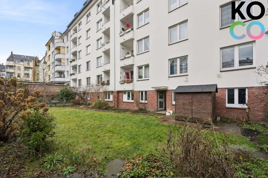Zur Einheit gehört außerdem ein eigener Kellerraum. Ein gepflegter Gemeinschaftsgarten steht den Bewohnern zur Nutzung zur Verfügung und unterstreicht den wohnlichen Charakter des Objekts.