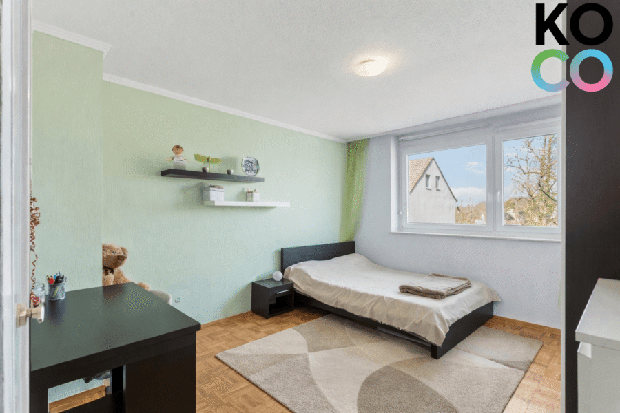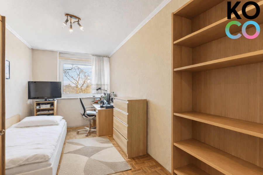 Ein besonderes Highlight stellt das zusätzliche Erkerzimmer dar, das aktuell als Schlafzimmer genutzt wird. Dank seiner Größe und Lage eignet sich der Raum ebenso ideal als Esszimmer, Homeoffice oder Gästezimmer und bietet damit vielfältige Nutzungsmöglichkeiten. Durch den durchdachten Grundriss besteht zudem die Möglichkeit, die Wand zwischen Wohn- und diesem Zimmer zu entfernen und so einen großzügigen, offenen Wohn- und Essbereich zu schaffen, der modernes Wohnen mit einem besonders weitläufigen Raumkonzept verbindet.