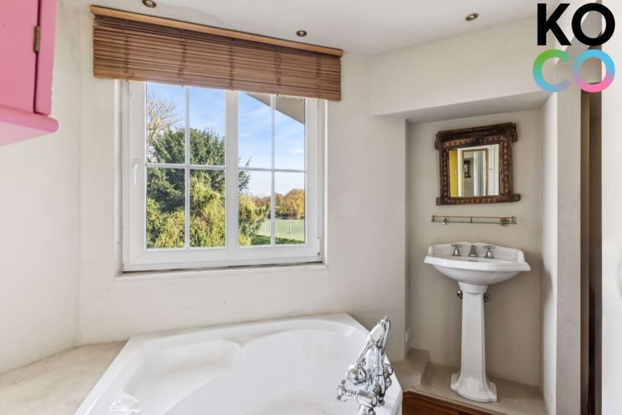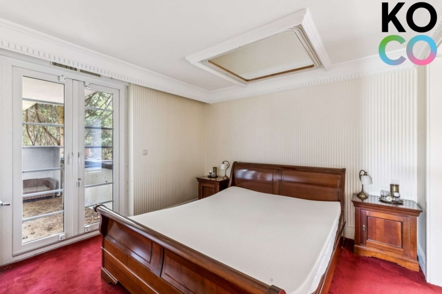 Ebenfalls auf dieser Ebene: Ein Schlafzimmer mit Schlafkoje in der Wand und En-suite-Bad mit Dusche und separatem WC. Der angrenzende Baderaum mit tiefem, in den Boden eingelassenem Tauchbecken ist eine architektonische Rarität, ein privates Spa in der eigenen Wohnung.