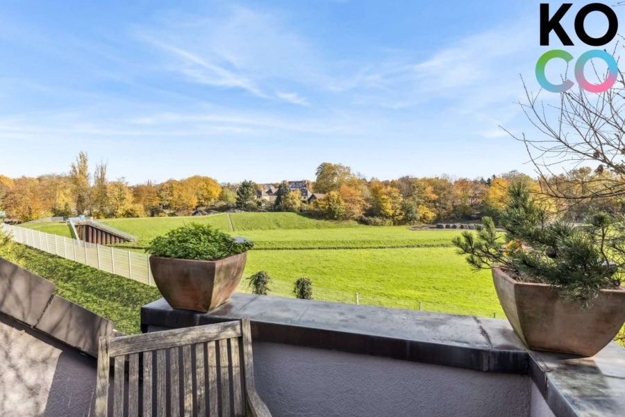 Die Wohnung liegt in einem gepflegten Mehrfamilienhaus in ruhiger Umgebung in Essen und beeindruckt durch individuelle Architektur, den Blick ins Grüne und einen unverwechselbaren Charakter.