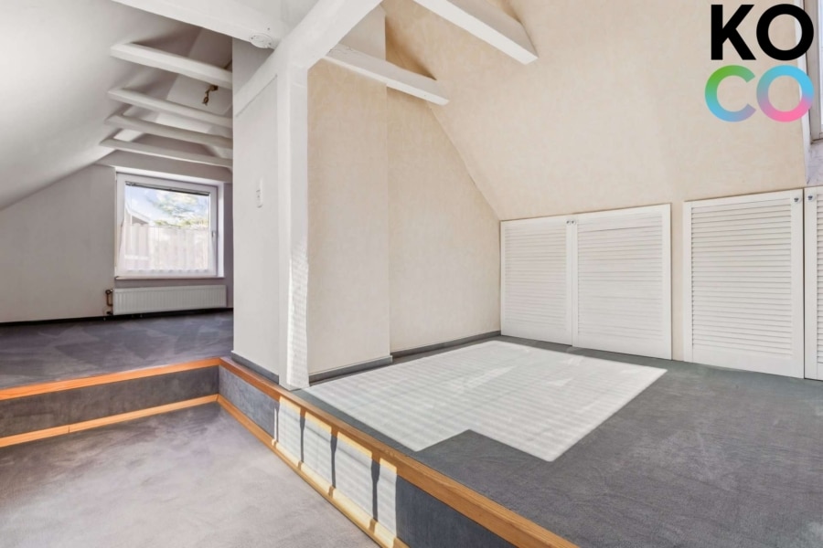 Das Haus ist durch eine Teilungserklärung rechtlich in zwei separate Wohneinheiten zu je 1/2 Anteil aufgeteilt. Zum Verkauf steht eine großzügige Wohnung, die sich über zwei Etagen erstreckt.